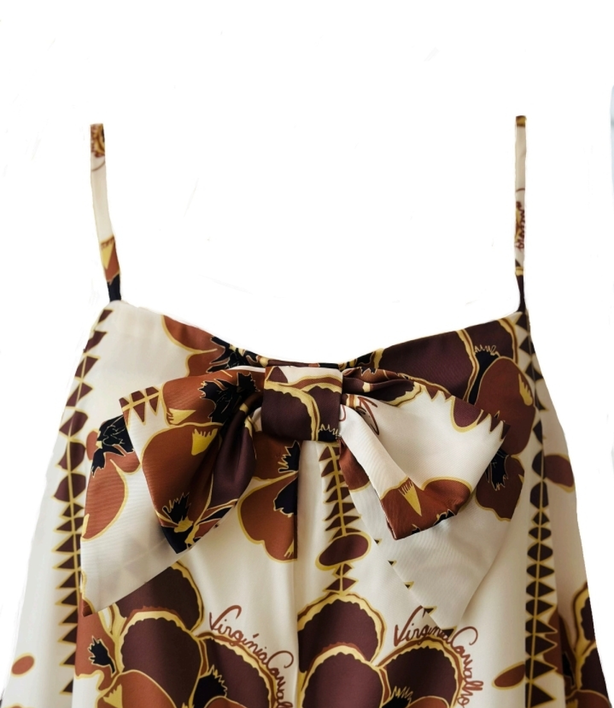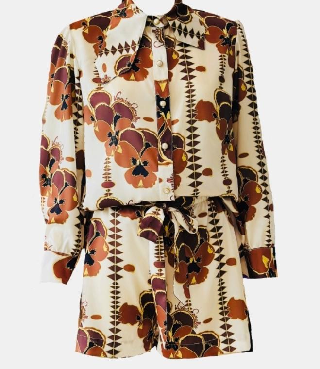Macacão branco e castanho da coleção pérola mumuila