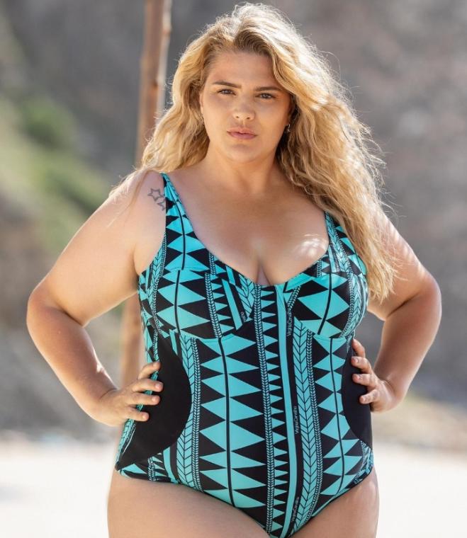 Fato de banho tribal print preto e branco plus size