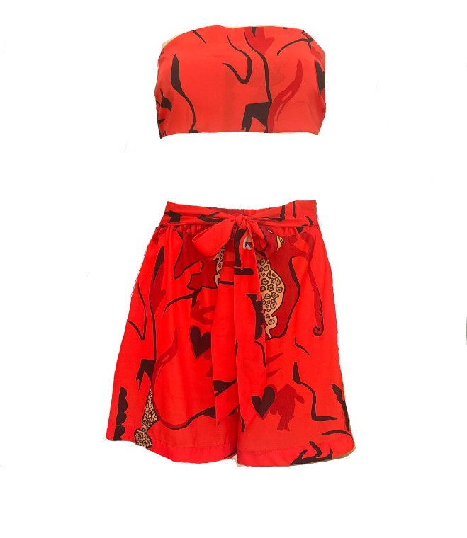 Conjunto tecido bordado inglês calção e Top longo, da Coleção Pérola de Mumuhuíla