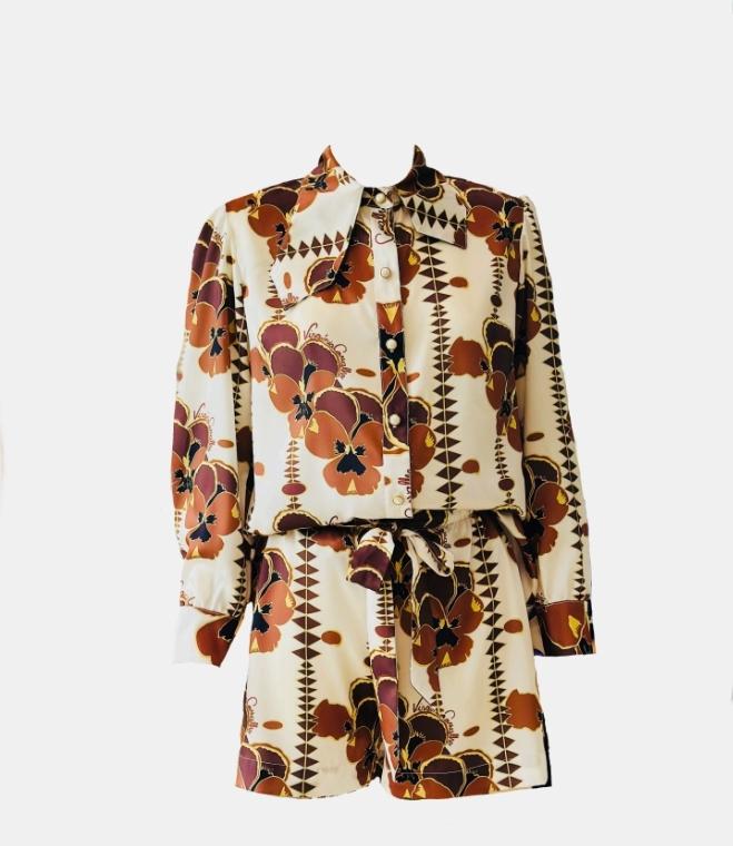 Conjunto tecido bordado inglês calção e Top longo, da Coleção Pérola de Mumuhuíla