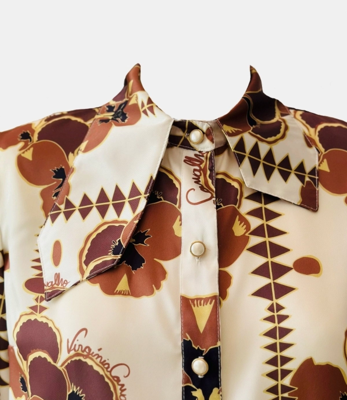 Camisa branca e castanha da coleção pérola mumuila